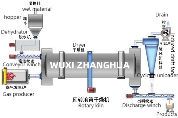 在加熱區經曆幹燥、分解、煆燒等階段。